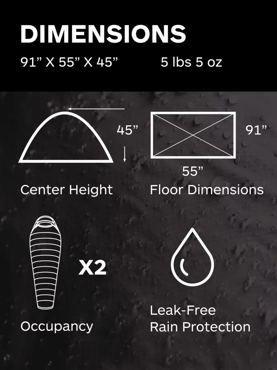 - Seam-taped, full-coverage fly for rain protection